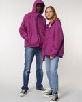 Longer back length with curved hem for protection. Bottom hem and hood with adjustable plastic stopper and elastic cord. Sealed hood visor. Zipped welt pockets. Non-functional flap, front and back. Self-fabric half-moon at back neck. Inside zip opening at bottom hem and inside loop, with snap at armhole providing easy access for chest decoration. Oeko-Tex certified. Vegan certified. Fairwear Foundation certified.